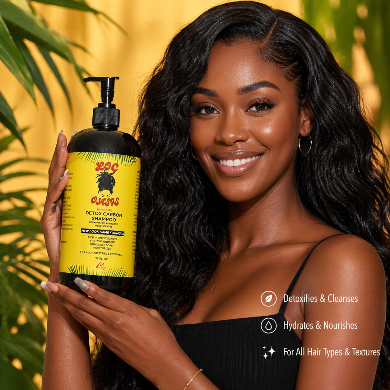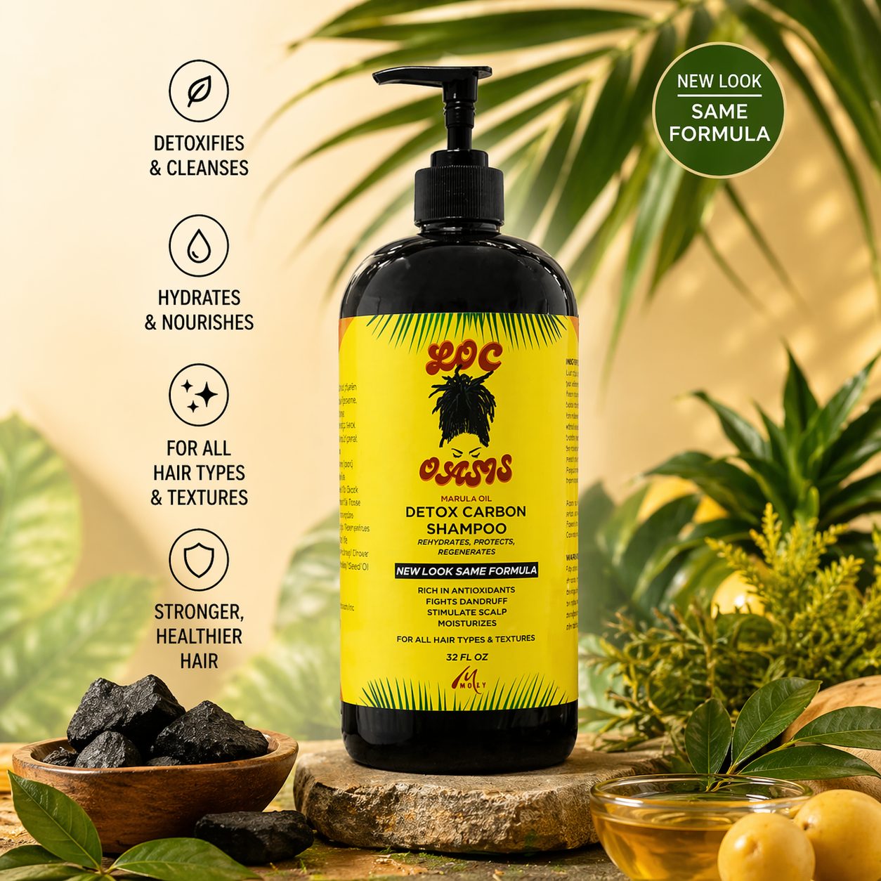 Directions: Apply Loc Oasis Detox Carbon Shampoo from roots to ends to wet hair and lather. Rinse and repeat as necessary. Towel dry and apply Loc Oasis Hydrating Detangling Shampoo.